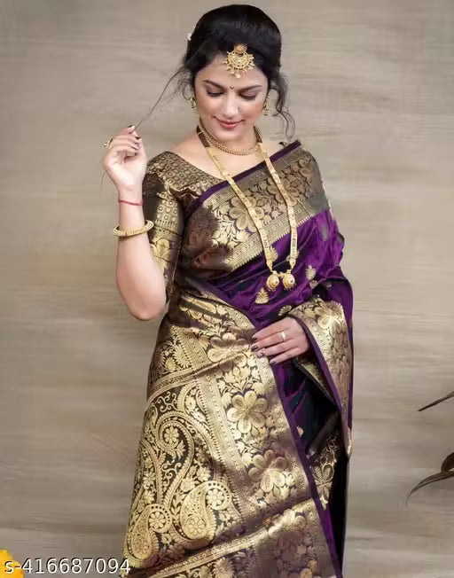Pethani soft Silk Saree With Blouse Piece Style Saree (Black)