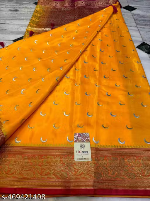 Chandrakon Chand Buti Satin Silk Embroidered Saree for Wedding and Parties