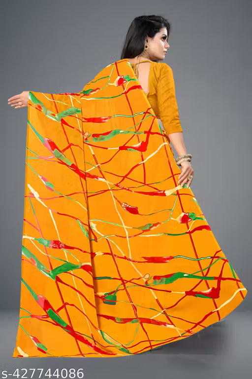 Daily use Trendy Printed Georgette Saree with Blouse Material