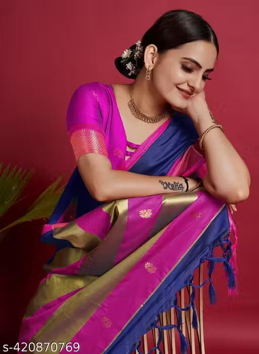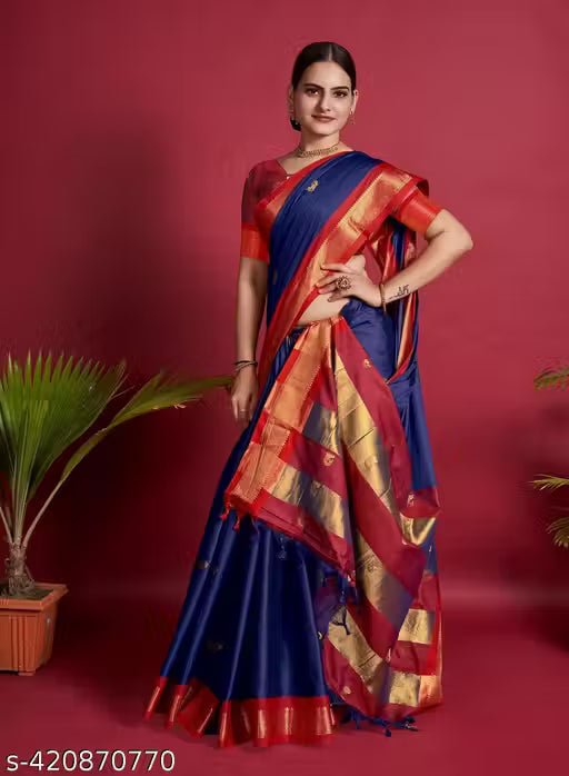pethani soft Silk Saree With Blouse Piece Style Saree (Nevy Blue)