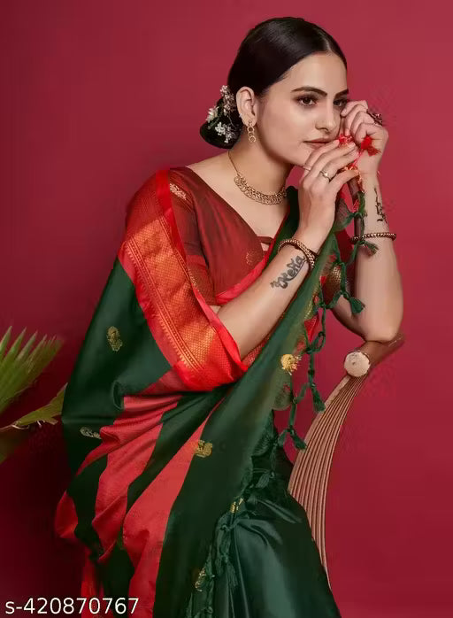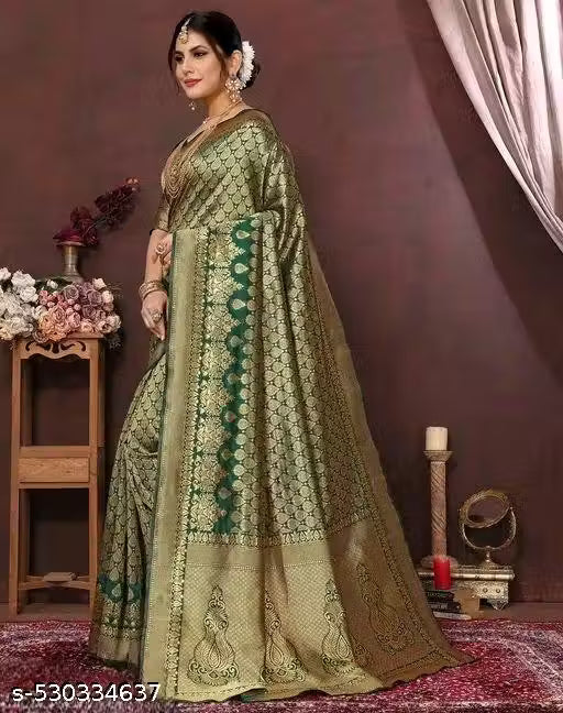 PAITHANI RICH PALLU SILK SAREE WITH BLOUSE(GREEN)