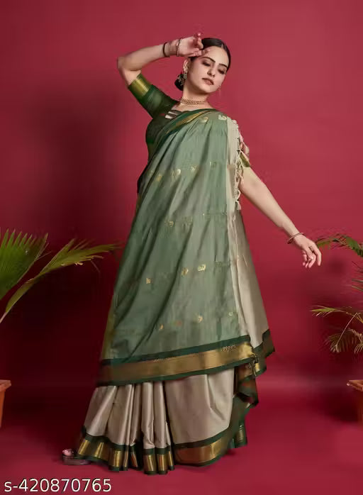 Paithani Cotton silk saree peacock butti latest Paithani saree