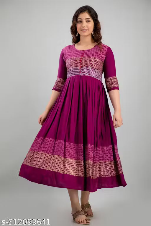 Women Rayon Printed Aaradhya Anarkali Kurtis