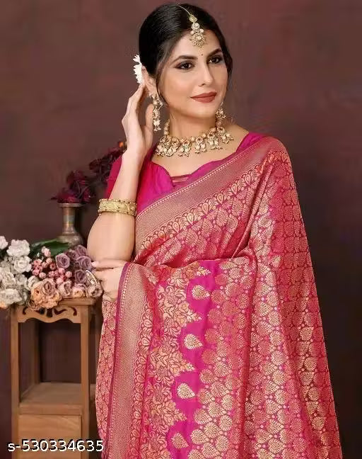 TRENDING PAITHANI RICH PALLU SILK SAREE WITH BLOUSE (PINK)