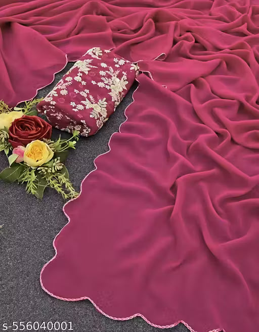 Add a touch of tradition and elegance to your wardrobe with this georgette saree featuring delicate floral prints and intricate embroidery. Crafted from lightweight georgette, it drapes effortlessly and ensures comfort while keeping your style premium and graceful.