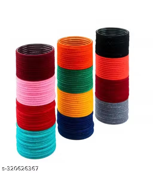 Non-Precious Metal Base Metal with Velvet worked Glossy Finished Bangle Set For Women and Girls, (MultiColour), Pack Of 144 Bangle Set