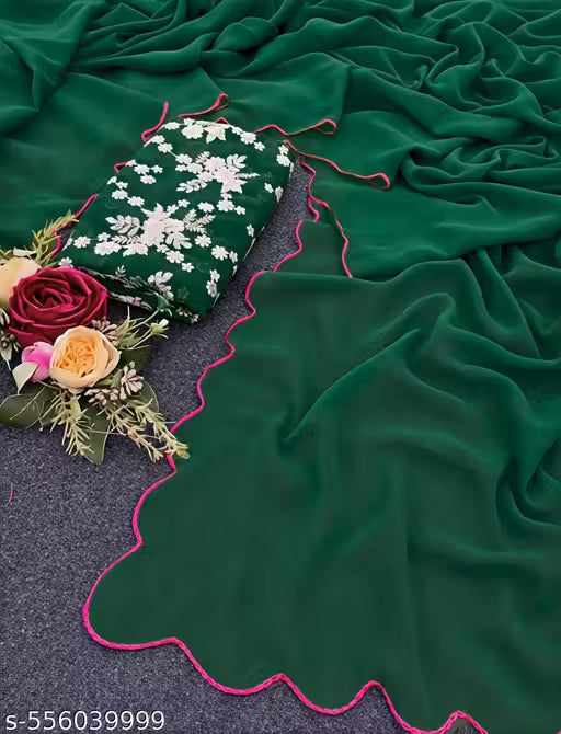Add a touch of tradition and elegance to your wardrobe with this georgette saree featuring delicate floral prints and intricate embroidery. Crafted from lightweight georgette, it drapes effortlessly and ensures comfort while keeping your style premium and graceful.