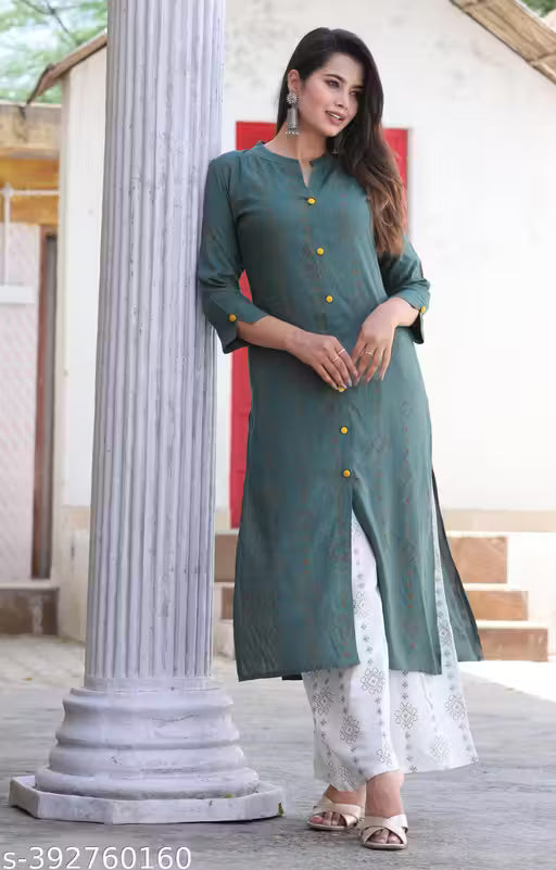 Name : Woman And Girls Rayon Fabric Printed Kurti With Palszo Set